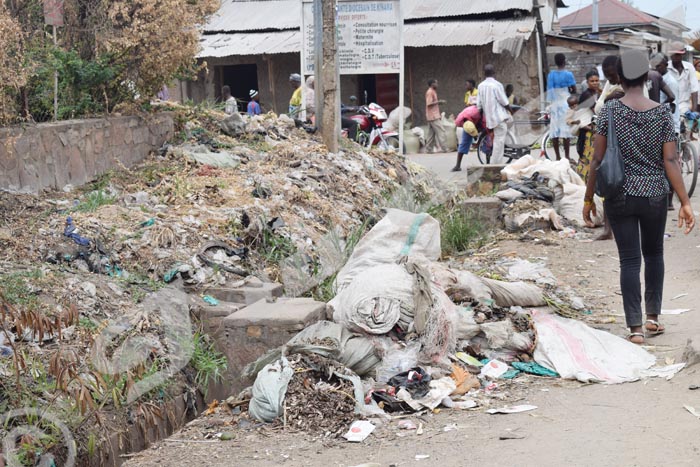 Quartier Ngozi en zone Kinama où des déchets ménagers sont entreposés sur le bord de la route macadamisée ou bien jetés dans des caniveaux.