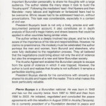 It is a crucial and unique work:it is not common for such an important Burundian personnality to share his thoughts with a large audience. The author relates the many steps it took to build the “Arusha spirit”.Following the mediators’lead-first Nyerere and then Mandela-many taboos and legitimate or fantasized fears had to be overcome. Ethnic issues had to be addressed head-on, without prevarications. This task was considerable, especially in a context of civil war.