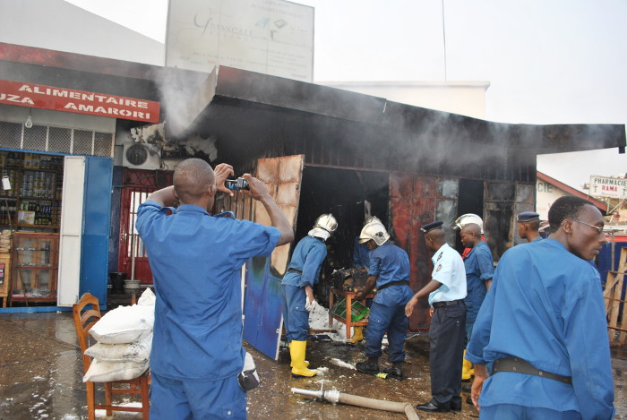 Les policiers de la brigade anti-incendie sont rapidement arrivés sur place et ont maîtrisé le feu ©Iwacu