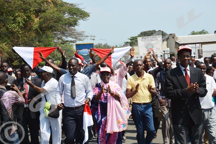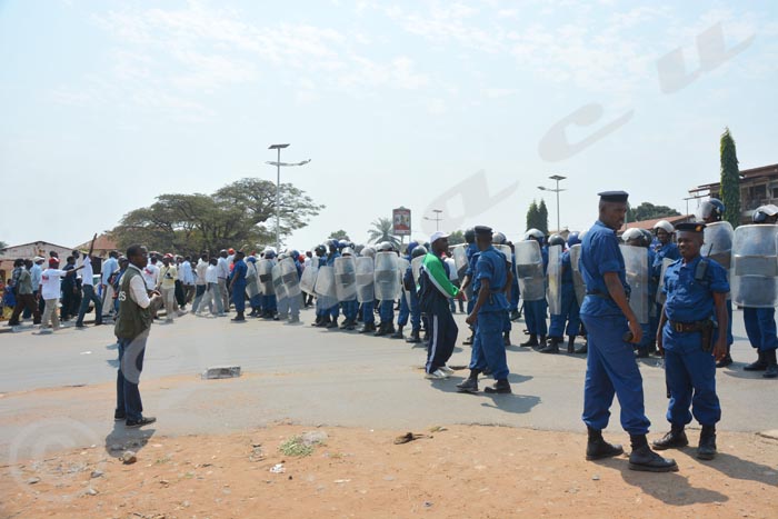 Dimanche, 13 juillet 2014 – Uprona : interdiction d’une réunion du comité central. A l’intérieur de la permanence, il y a 21 jeunes. Même s’ils affirment qu’ils sont des Upronistes et qu’ils sont là tous les jours comme d’autres personnes. Toutefois, ils nous refusent de photographier ©O.N/Iwacu Dimanche, 13 juillet 2014 – Uprona : interdiction d’une réunion du comité central. 5 diplomates dont l’ambassadeur de France au Burundi étaient invités et ne trouvent rien à Kumugumya ©R.N/Iwacu Dimanche, 13 juillet 2014 – Uprona : interdiction d’une réunion du comité central. Le premier secrétaire de l’Ambassade des Pays-Bas au Burundi indique qu’ils ne savaient pas que la réunion avait été interdite ©O.N/Iwacu Dimanche, 13 juillet 2014 – Uprona : interdiction d’une réunion du comité central. D’un coup les Badasigana se rassemblent sur le terrain en face de l’hôpital Prince Régent Charles. Le professeur Evariste Ngayimpenda, vice-président de l’aile Nditije est à la tête du mouvement. Ils se dirigent vers la permanence nationale. La police leur empêche de continuer. Un officier de police leur montre la copie de la lettre du ministre Nduwimana qui indique que la réunion n’est pas permise ©R.N/Iwacu Dimanche, 13 juillet 2014 – Uprona : interdiction d’une réunion du comité central. Le professeur Ngayimpenda, lit les clauses de la réunion qui avait eu lieu à l’insu de la police. Ils dansent en scandant des chants du parti ©O.N/Iwacu Dimanche, 13 juillet 2014 – Uprona : interdiction d’une réunion du comité central. Le député Charles Nditije, qui « avait échappé à un assassinat le soir de ce samedi », y passe un petit temps. ©O.N/Iwacu Dimanche, 13 juillet 2014 – Uprona : interdiction d’une réunion du comité central. Alors qu’ils chantaient en masse, la police les empêche d’arriver au boulevard du 1er novenmbre. ©O.N/Iwacu Dimanche, 13 juillet 2014 – Uprona : interdiction d’une réunion du comité central. Intervention du Groupement Mobile d’Intervention Rapide (GMIR). Alors qu’ils étaient prêts à leur lancer des gaz lacrymogènes, le mouvement cesse un peu. L’officier de police qui assurait le commandement les laisser partir. Les uns prennent leurs véhicules et les autres vont prendre des bus. ©R.N/Iwacu Vendredi, 11 juillet 2014 – Lancement officiel de la 4ème édition de Toptentube Music Awards organisé par la RSF Bonesha FM. Quelques artistes burundais étaient invités ©A.K/Iwacu Jeudi, 10 juillet 2014 – Alors qu’il faisait son habituel sport (football) au terrain Tempête, Pierre Nkurunziza a rencontré les journalistes sportifs pour leur parler de son appréciation par rapport mondial en cours. En tant que chef d’Etat, il affirme qu’il ne peut pas dire sa position par rapport au favori lors de la finale (Argentine-Allemagne) ©O.N/Iwacu Jeudi, 10 juillet 2014 – Rien n’a été sauvé dans cette maison au quartier Gasekebuye dans la commune urbaine de Musaga. L’incident a eu lieu quand l’électricité est revenue dans l’après midi ©A.K/Iwacu Jeudi, 10 juillet 2014 – Sur la Ruhwa, à la frontière burundo-rwandaise. La rivière se traverse à gué. Ces enfants affirment voir souvent des fraudeurs en train de faire passer des marchandises ©P.N/Iwacu Mercredi 9 juillet 2014 – Six camions anti-incendie et 1819 pièces de tôles ondulées, le tout d’une valeur de 5 millions de dollars américains, c’est le lot de matériel que l’ambassade de la République Populaire de Chine a remis officiellement au gouvernement burundais ©P. N/Iwacu Mardi, 08 juillet 2014 – A Rumonge, après la saisi des motos qui transportent deux personnes en plus du conducteur, la police apprend le code de la route aux motards ©F. N/Iwacu Clôture de la première édition de Bujumbura Fashion Week ce samedi 5 juillet. Cy’ Mun l’agence de Cynthia Munwangari, l’organisatrice de l’événement présente une collection aux couleurs nationales ©O.N/Iwacu Première édition de Bujumbura Fashion Week : les robes de mariage du créateur camerounais Martial Topolo ©O.N/Iwacu Première édition de Bujumbura Fashion Week ce samedi 5 juillet. La collection du nigérian Adebayo ©O.N/Iwacu