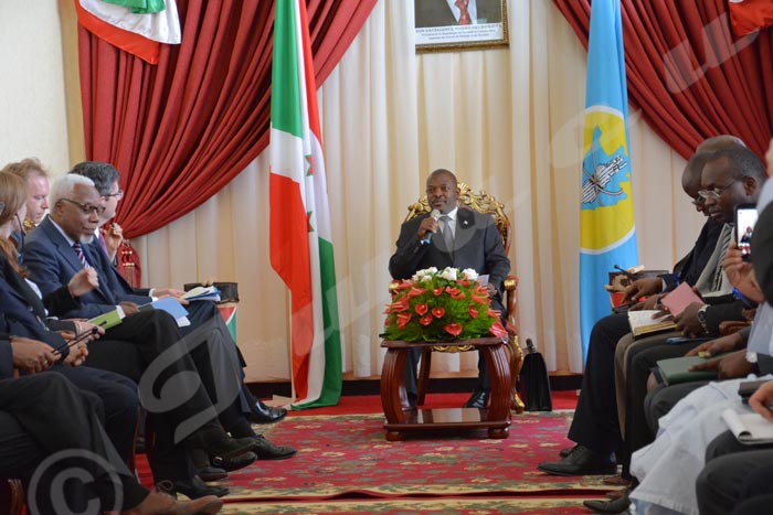 Vendredi, 13 mars 2015 – Conférence de presse des des membres du Conseil de sécurité des Nations-Unies en visite d’une journée au Burundi Ambassadeur François Delattre, chef de la délégation souligne qu’il faut respecter les accords d’Arusha dans leur esprit et dans leur lettre ©O.N/Iwacu Vendredi, 13 mars 2015 – Par rapport au 3ème mandat de M.Nkurunziza, l’ambassadeur Samantha Jane Power fait savoir qu’il nous faut des fois avaler des grenouilles pour le bien de la nation. Elle rappelle que la position des USA est que personne ne peut dépasser 10 à la tête du Burundi selon les Accords d’Arusha ©O.N/Iwacu Vendredi, 13 mars 2015 – Le président burundais Pierre Nkurunziza accueille une délégation du Conseil de sécurité des Nations-unis en visite au Burundi. Quant au 3ème mandat qu’il risque de briguer, ces ambassadeurs indiquent que la réponse n’est de M. Nkurunziza n’est ni oui ni non ©O.N/Iwacu Jeudi, 12 mars 2015 – Depuis ce matin, la maison de la presse étaient assiégée par des policiers. La raison n’était pas encore connue. Alexandre Niyungeko, président de l’union burundaise des journalistes s’était vu refuser l’accès à son bureau ©R.N/Iwacu Jeudi, 12 mars 2015 – Depuis ce matin, la maison de la presse était assiégée par des policiers. La raison n’était pas encore connue ©R.N/Iwacu Mardi, 11 mars 2015 – APC1 Eric Ndayikengurukiye, un policier qui tentait d’arrêter des bandits armés l’on abattu. Les criminels venaient tuer homme qui venait d’une banque ©A.U/Iwacu Mardi, 10 mars 2015 – Ces policiers assistent au en se servant des poteaux qui n’ont jamais servis ©F.N/Iwacu Lundi, 09 mars 2015 – Cet enfant mineur vend des arachides pour son employeur. Sous le soleil de plomb, il s’assoit pour se reposer mais finit par dormir au bord de la route à Rohero I. Il courait le risque de voir les arachides volés. Peut être qu’il avait faim ©O.N/Iwacu Dimanche, 08 mars 2015 – Football. Après égalisation d’un but partout, au match retour, le Burundi est qualifié pour affronter l’équipe qui aura gagné entre l’Égypte et le Kenya ©O.N/Iwacu
