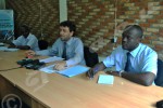 Jeudi, 14 août 2014 -Damien CHERVAZ (Au milieu), avocat au barreau de Genève, venu en appui aux avocats burundais de Pierre-Claver Mbonimpa ©JB.S/Iwacu Mercredi, 13 août 2014 – La société chinoise Chiko est à pied d’œuvre pour réfectionner sept points les plus touchés sur la RN1. Date limite de fin des travaux : le 29 septembre. Coût : 3milliards Lundi, 11 août 2014 – Une trentaine d’étudiants en 3ème cycle de médecine viennent d’entamer leur mouvement de grève, ce 11 août. Ils revendiquent le déblocage des fonds pour continuer leurs études à l’étranger ©C.S/Iwacu