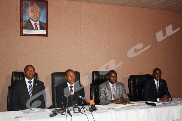 Lundi, 17 février 2014 – De gauche à droite: le ministre de la Sécurité Publique, le ministre de l’Intérieur, le ministre de la Justice et celui de la Défense et des Ex-combattants ont organisé conjointement une conférence de presse.©E.M/Iwacu