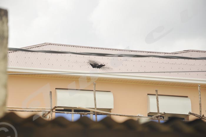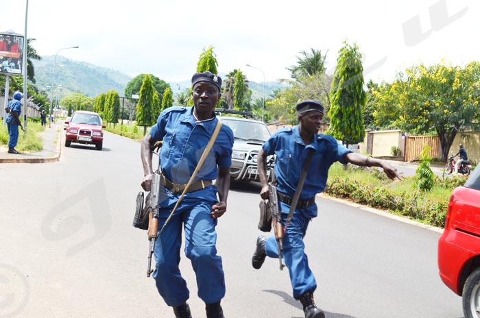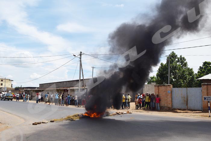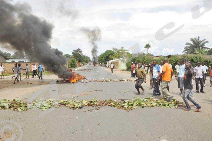 Du du sur la route séparant les quartiers 1et 5 de Ngagara ©Iwacu Une grenade a été lancée sur le toit de cette maison en construction à la 5ème de Nyakabiga III ©Iwacu On brûle aussi des pneus à Jabe ©Iwacu A Musaga, on brûle des pneus ©Iwacu A la Maison de la Presse, des journalistes qui étaient en synergie des médias vident les lieux sous l’ordre de la police ©Iwacu Ces policiers de la garde de Kazungu de la documentation se précipitent pour empêcher un journaliste d’Iwacu de prendre des images à la Maison de la Presse. Un commissaires de la CNIDH leur interdit de lui arracher son appareil photo ©Iwacu Des policiers assiègent l’entrée de la Maison de la Presse ©Iwacu Cet Imbonerakure (T-shirt-noir) aide les policiers à arrêter les manifestants ©Iwacu On brûle des pneus à Musaga. La police est débordée ©Iwacu La RN7 ne passe pas au niveau de Musaga ©Iwacu Un handicapé est le chef de file des manifestants ©Iwacu Le ministre de la Sécurité sillonne différents quartiers de Bujumbura. Ici il donne des ordres à Ngagara ©Iwacu Des manifestants en provenance de Ruziba ©Iwacu Les manifestants acclament les militaires ©Iwacu Des manifestants arrêtés à Nyakabiga sont conduits à la police ©Iwacu Des manifestants sur l’avenue Muyinga ©Iwacu Fier de voir des militaires ©Iwacu Les manifestants lèvent les mains à Nyakabiga ©Iwacu A Nyakabiga, les manifestations ont commencé vers 8h ©Iwacu