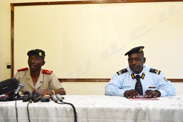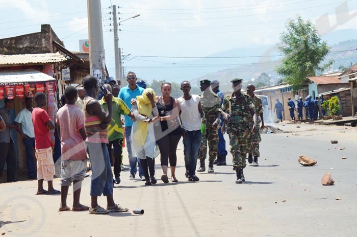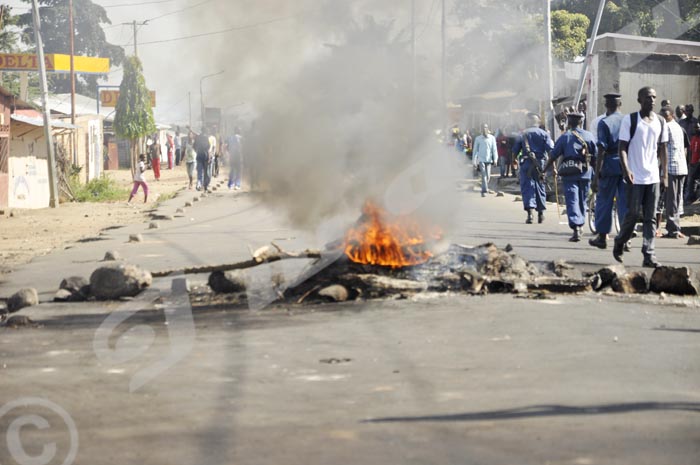 Alors que les autres policiers n’ont que des matraques, celui-ci a trois chargeurs sur son fusil ©Iwacu Les élèves du lycée Scheppers de Nyakabiga quittent l’internat ©Iwacu LE chef d’État Major général de l’Armée burundaise et le DG de la police nationale du Burundi déplorent 2 civils morts et 37 policiers blessés ©Iwacu Les militaires amènent au centre de santé une fille qui est blessée ©Iwacu A Nyakabiga, les manifestants acclament les militaires mais n’écoutent même pas la police ©Iwacu Du feu sur différentes routes à Musaga ©Iwacu Le matin, des jeunes de Nyakabiga avaient commencé à manifester ©Iwacu Il y a beaucoup de personnes qui montent à l’intérieur du pays au niveau de la gare du nord ©Iwacu