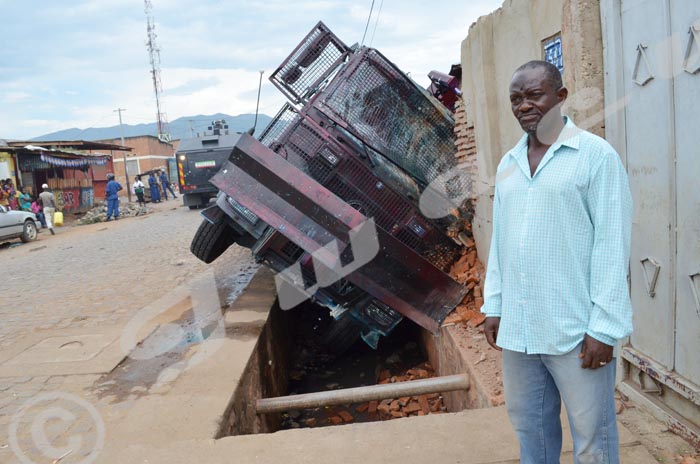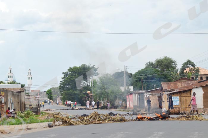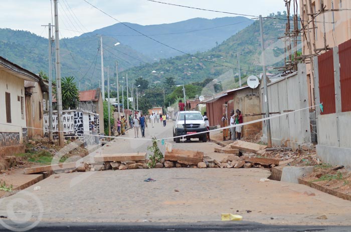 Un des 2 camions anti-émeutes est tombé dans dans un caniveau à Bwiza ©Iwacu Étonnant de voir comment le camion a changé de couleur après l’accident ©Iwacu Le propriétaire de la parcelle dont la clôture a été détruite par le camion demande à la police de la reconstruire ©Iwacu A Nyakabiga, l’avenue Muyinga est barrée ici et là ©Iwacu La 5ème avenue de Nyakabiga III est barrée ©Iwacu Les jeunes de Nyakabiga marchent sur l’avenue de la Jeunesse vers Jabe ©Iwacu A Nyakabiga III, les jeunes avaient barricadé les routes depuis très tôt le matin ©Iwacu