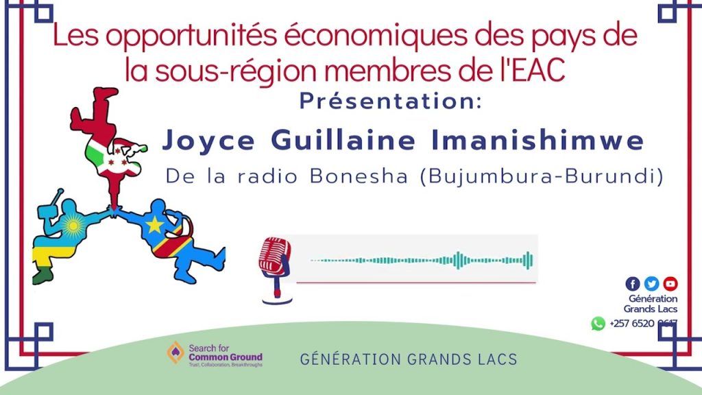 L’émission Génération Grands-Lacs est un rendez-vous hebdomadaire par les jeunes et pour les jeunes. C’est une occasion pour les jeunes de donner leurs avis et contributions sur des questions de leur région. C’est une production de Search for Common Ground en collaboration avec les radios, Bonesha FM de Bujumbura, radio Isango star de Kigali, Mama radio de Bukavu, la radio notre dame de Tanganyika, RNDT d’Uvira et la radio Kivu stars de Goma.