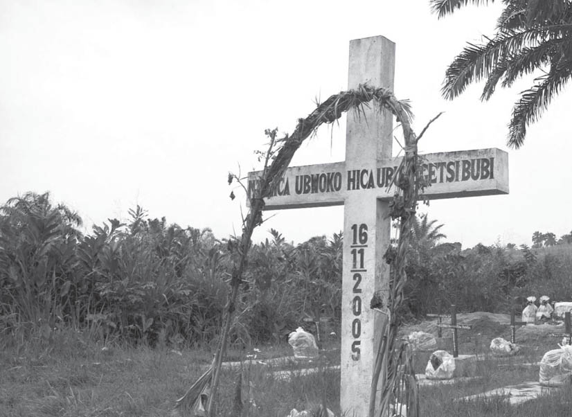 En provenance de Bujumbura, c’est sur la route qui mène à l’hôpital moderne de Mpanda, à quelques centaines de mètres de l’établissement. Sur le bas-côté de la route goudronnée, une arche en branches de palmiers ceint une grande croix en béton enduite de chaux. Il y est marqué Ntihica ubwoko hica ubutegetsi bubi (Ce n’est pas l’ethnie qui tue, mais un mauvais pouvoir).