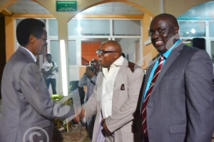 Poignée de main entre le Rédacteur en chef d’Iwacu et le ministre Tharcisse Nkezabahizi